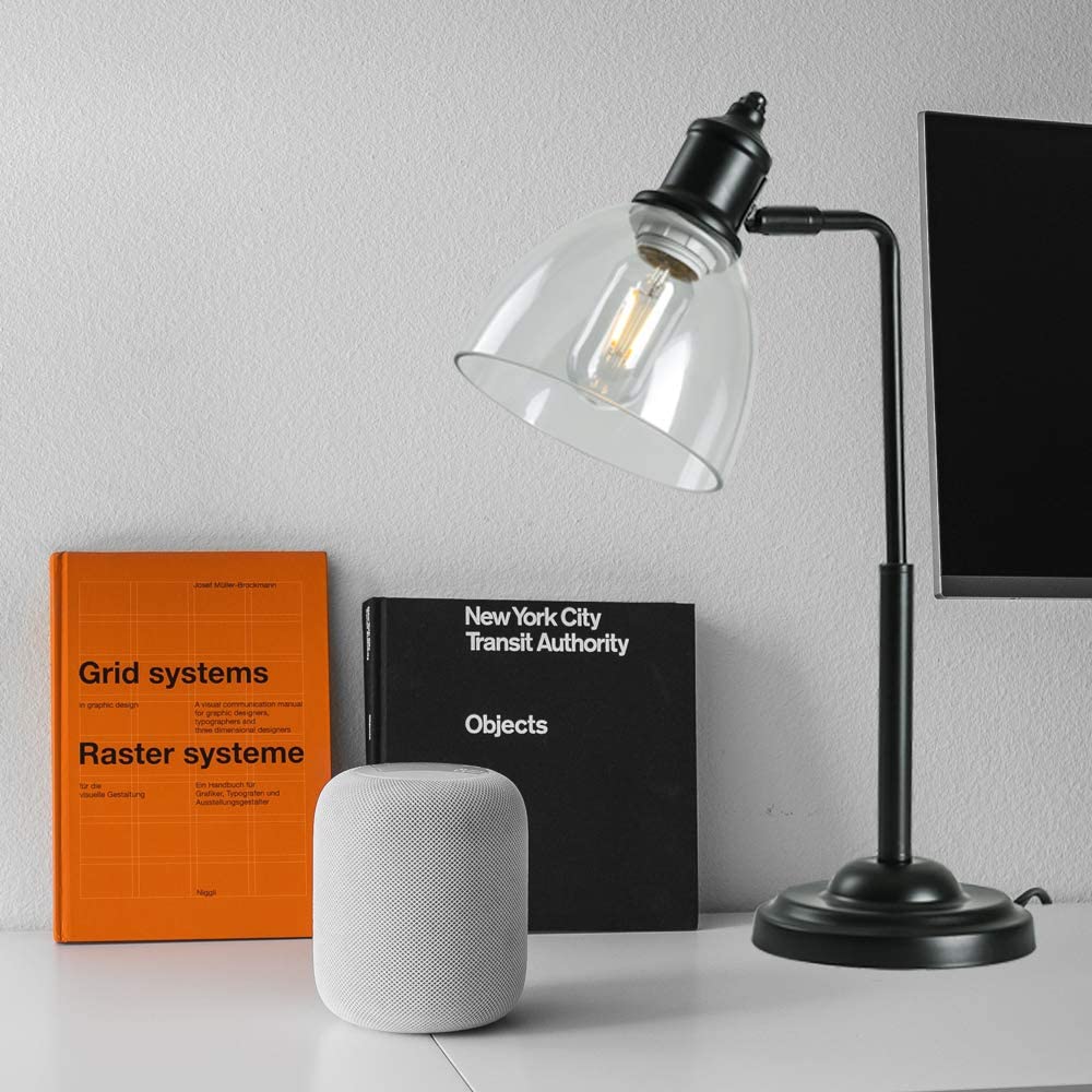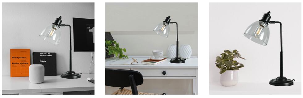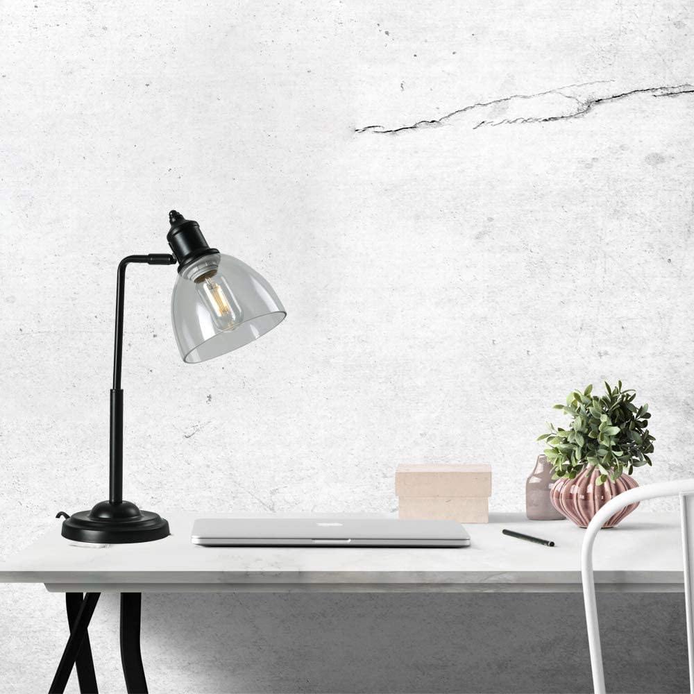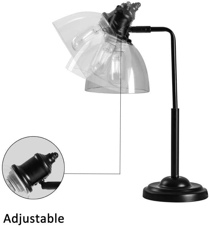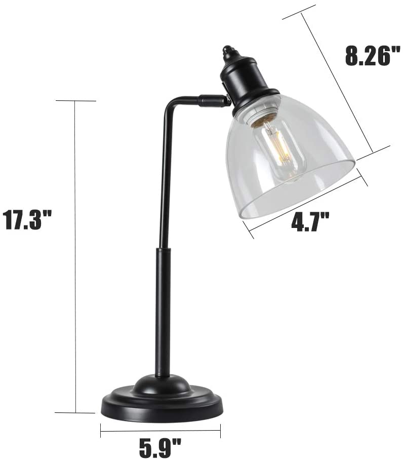 >Lekvey Black Adjustable Modern Tabla Lamp Simple Desk Lamp Fixture,Industrial Metal Seeded Glass Table Lamp,Desk Reading Lamp,Vintage Edison Bulb for Bedroom,Living Room,Office,Night Table,Dorm