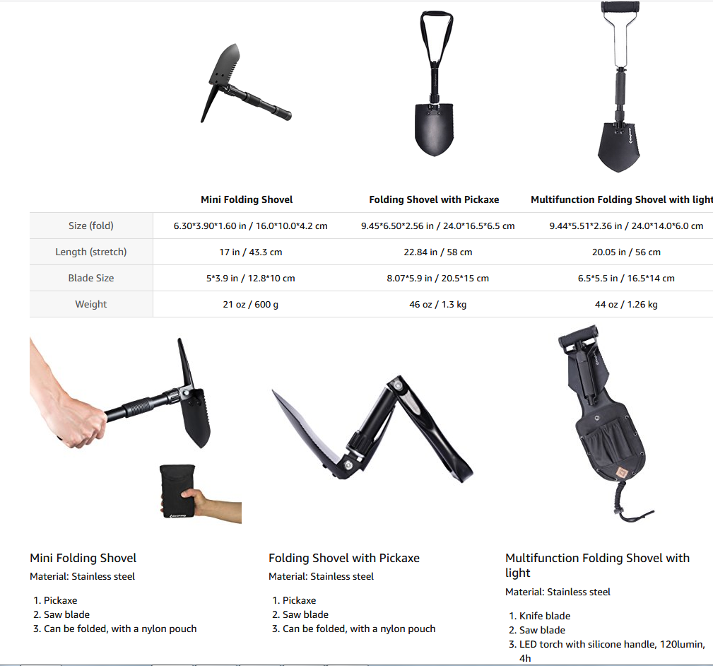 【MULTI FUNCTIONS】Dig, saw, cut, hammer, shovel. Our military folding